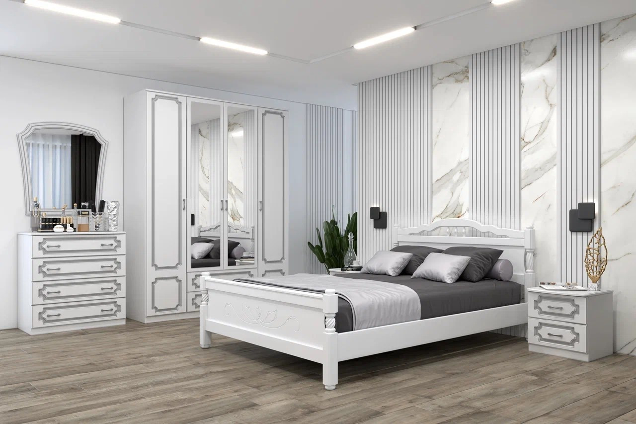 Кровать Карина-5 изготовлена из массива сосны с элементами из МДФ.