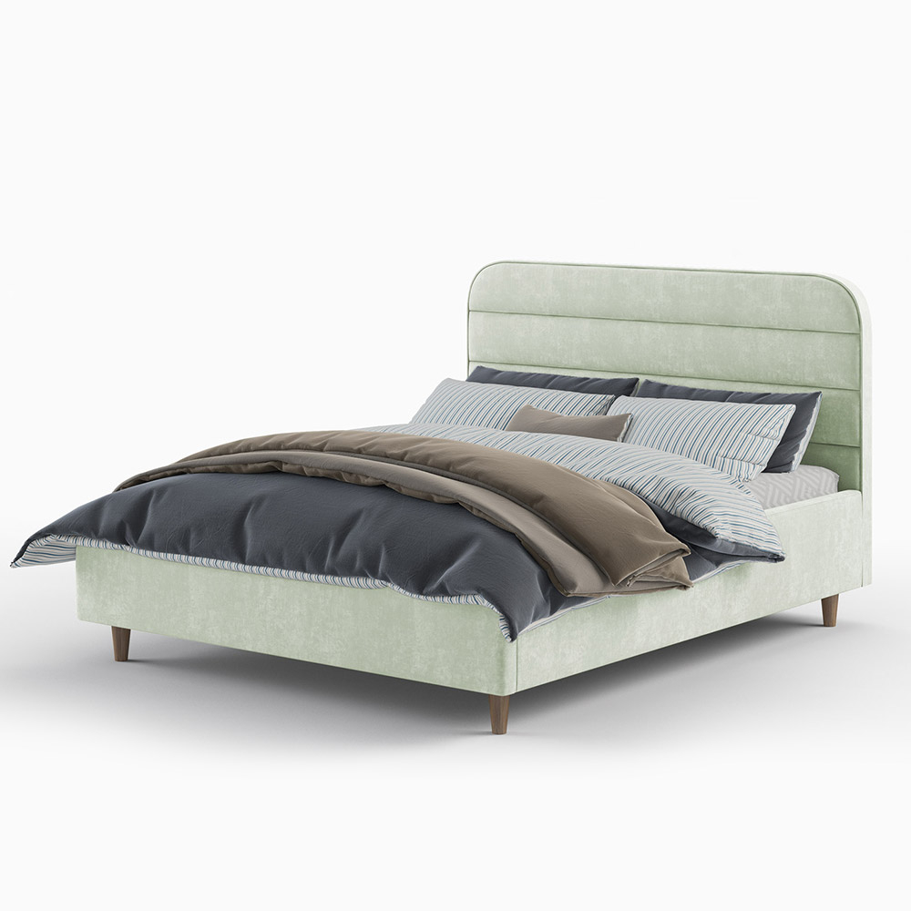 Обивка кровати на выбор: рогожка, экокожа или ткань велюр.
