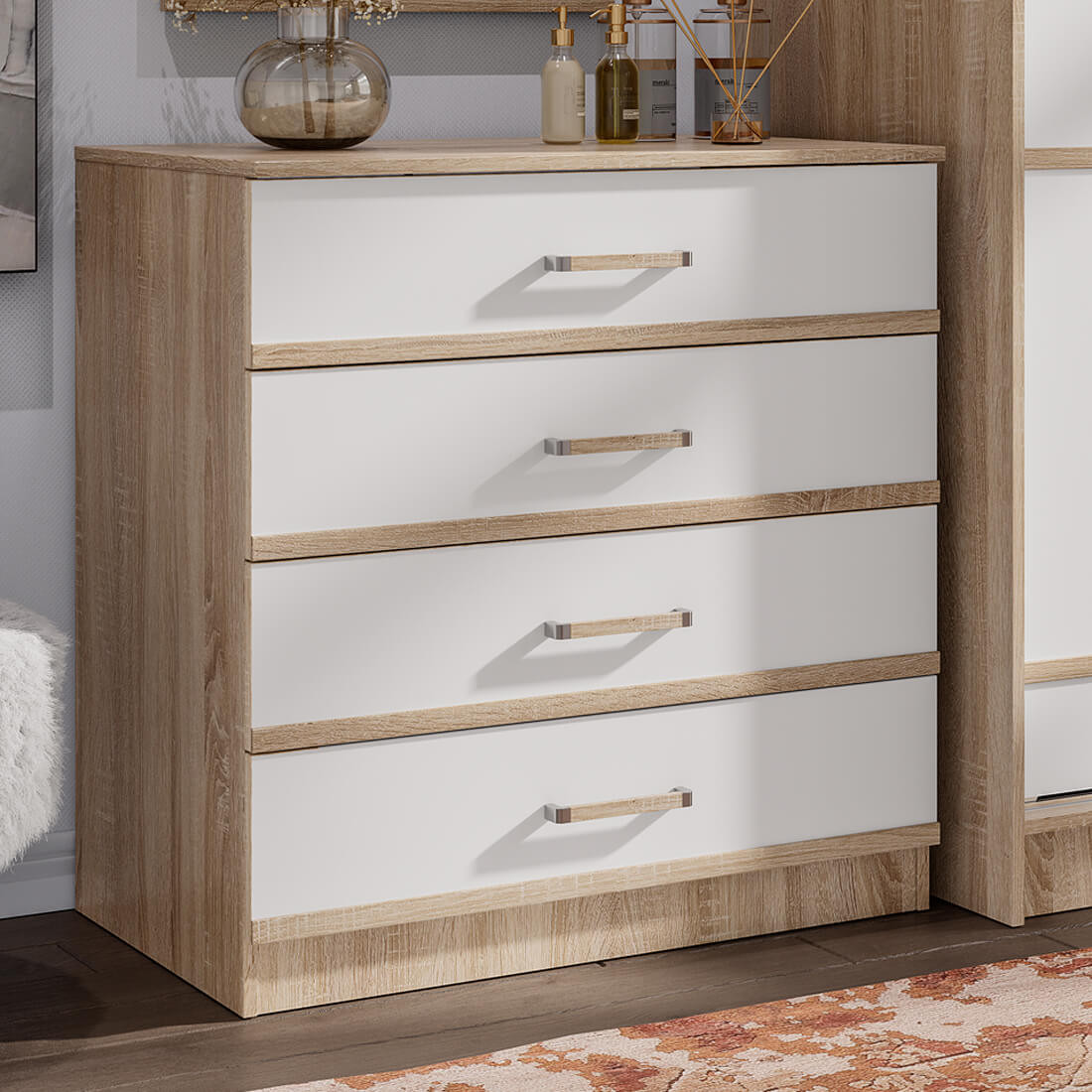 Вместительный комод с четырьмя выдвижными ящиками на роликовых направляющих из спальной коллекции Сакура.