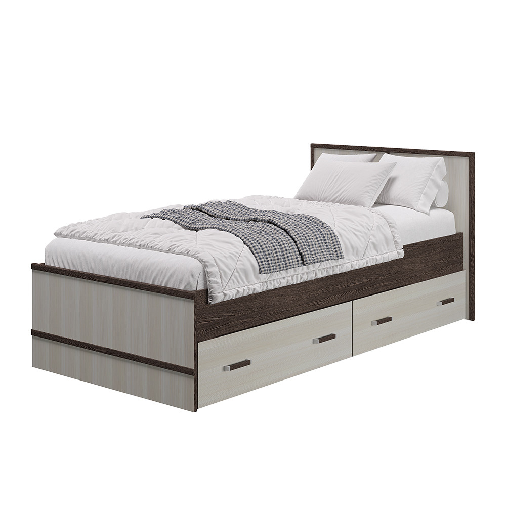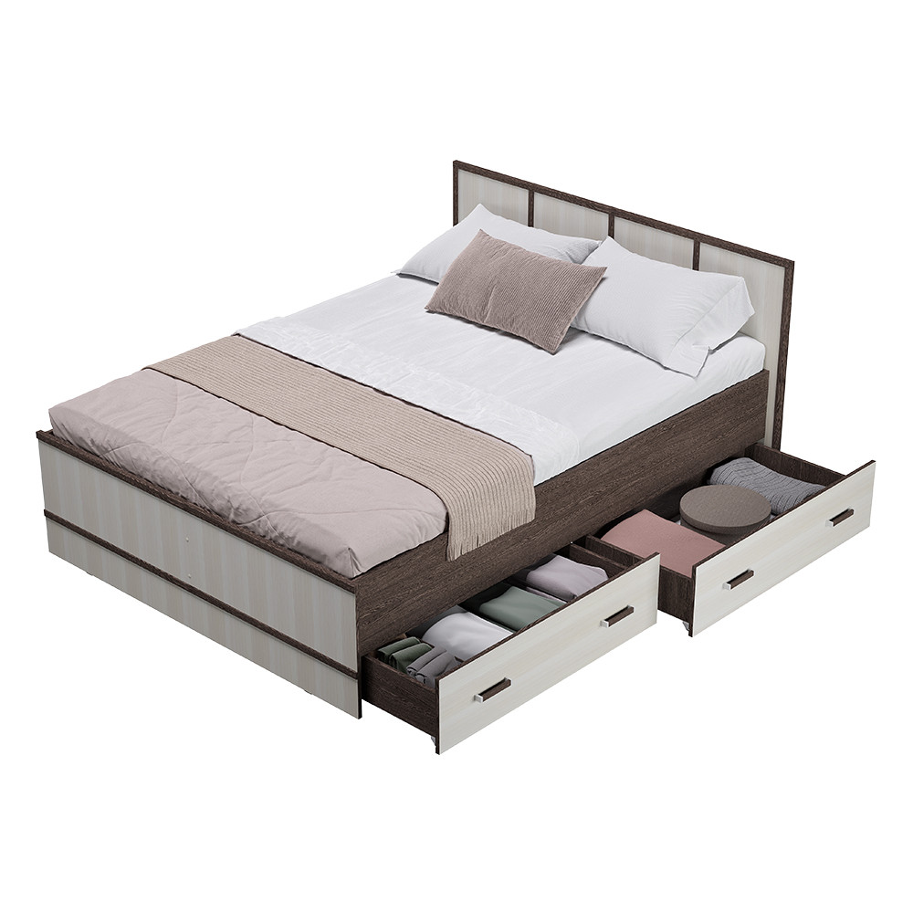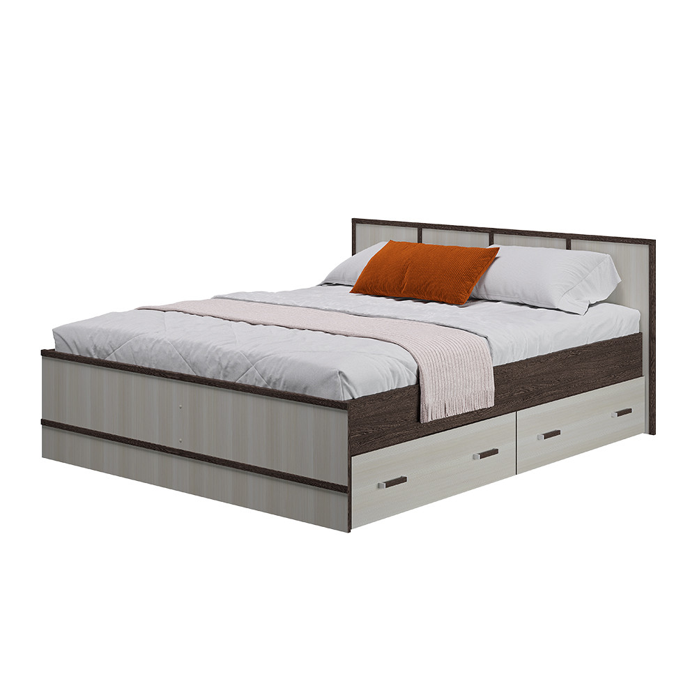 Кровать из коллекции Сакура, головной и ножной щитки которой украшены МДФ-панелями. Удобства добавляют выдвижные ящики для белья. Основанием кровати служат проложки из ЛДСП.