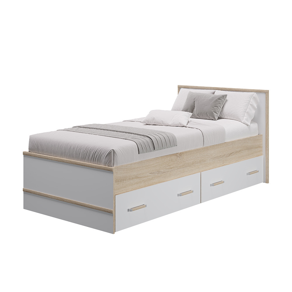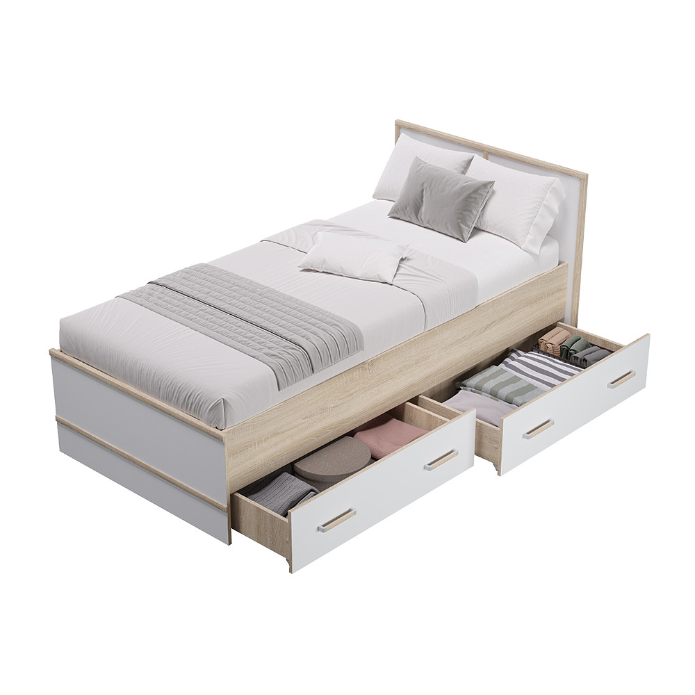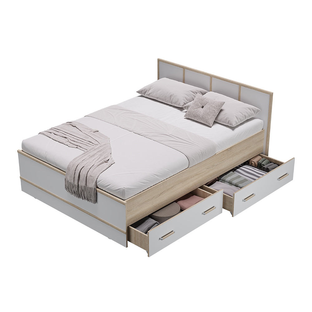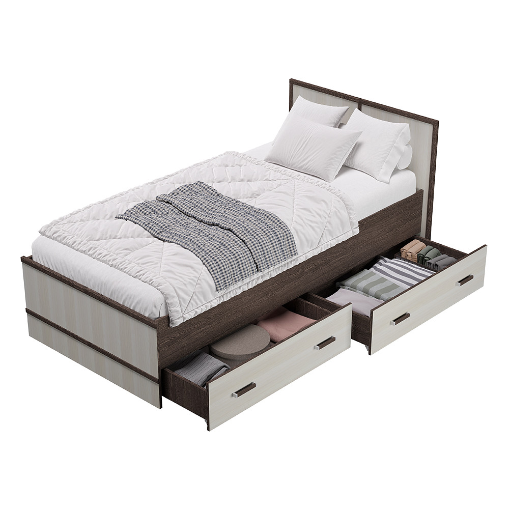 Кровать из коллекции Сакура, головной и ножной щитки которой украшены МДФ-панелями. Удобства добавляют выдвижные ящики для белья. Основанием кровати служат проложки из ЛДСП.