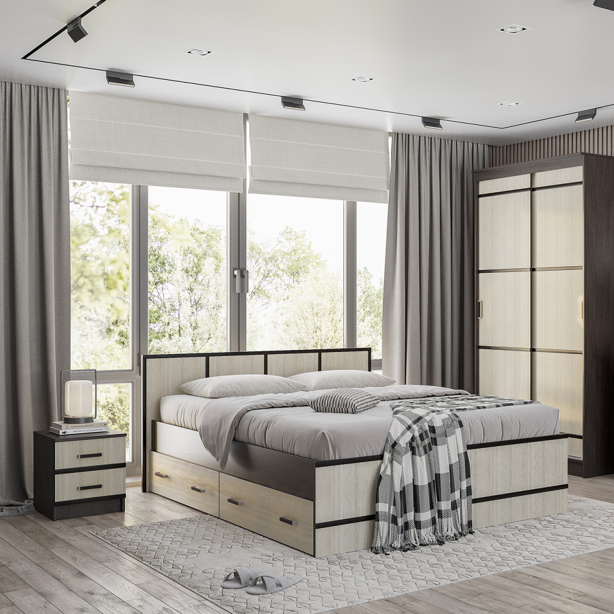 Лаконичный дизайн хорошо гармонирует со стилем модерн. В этой модульной системе все продумано до мелочей. Теплые оттенки привносят в Ваш дом свет и визуально делают пространство свободнее, а каркас из темного дерева добавляет основательности.