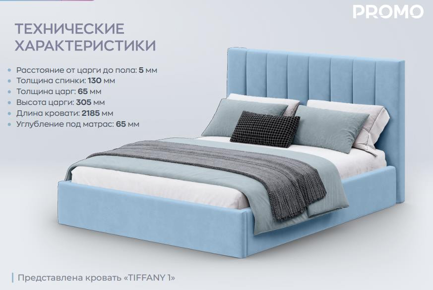 Кровать Тиффани-1 - стильная и лаконичная кровать в современном дизайне. Прекрасно впишется в интерьер спальной комнаты. Практичный функционал - кровать укомплектована подъемным механизмом с нишей для хранения вещей. Приятная и легкая в уходе велюровая ткань, доступна для заказа во множестве расцветок.