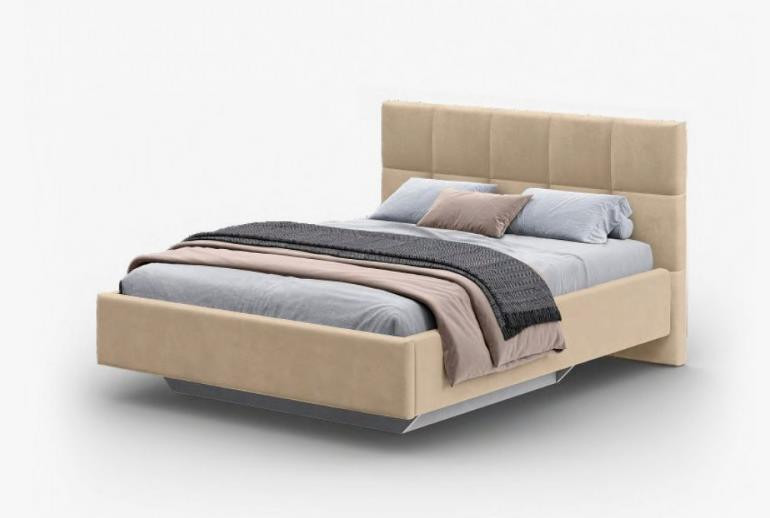 Кровать с парящим эффектом, имеет цельное ортопедическое основание с подъемным механизмом и бельевым настилом ЛХДФ