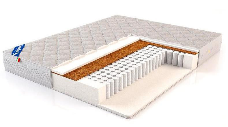 Кокос - пропитанные латексом (латексированные) термоскрепленные плиты. Высокое содержание латекса (50%) обеспечивает материалу упругость и устойчивость к нагрузкам. Экологичность, природная эластичность и хорошая воздухопроницаемость плит из кокосового волокна делают поверхность матраса жесткой и упругой.